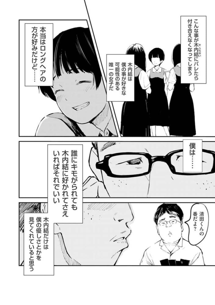 物語の本当の見せ場は、主人公が唯一自分に好意を持ってくれるかもしれない木内結との関係性。